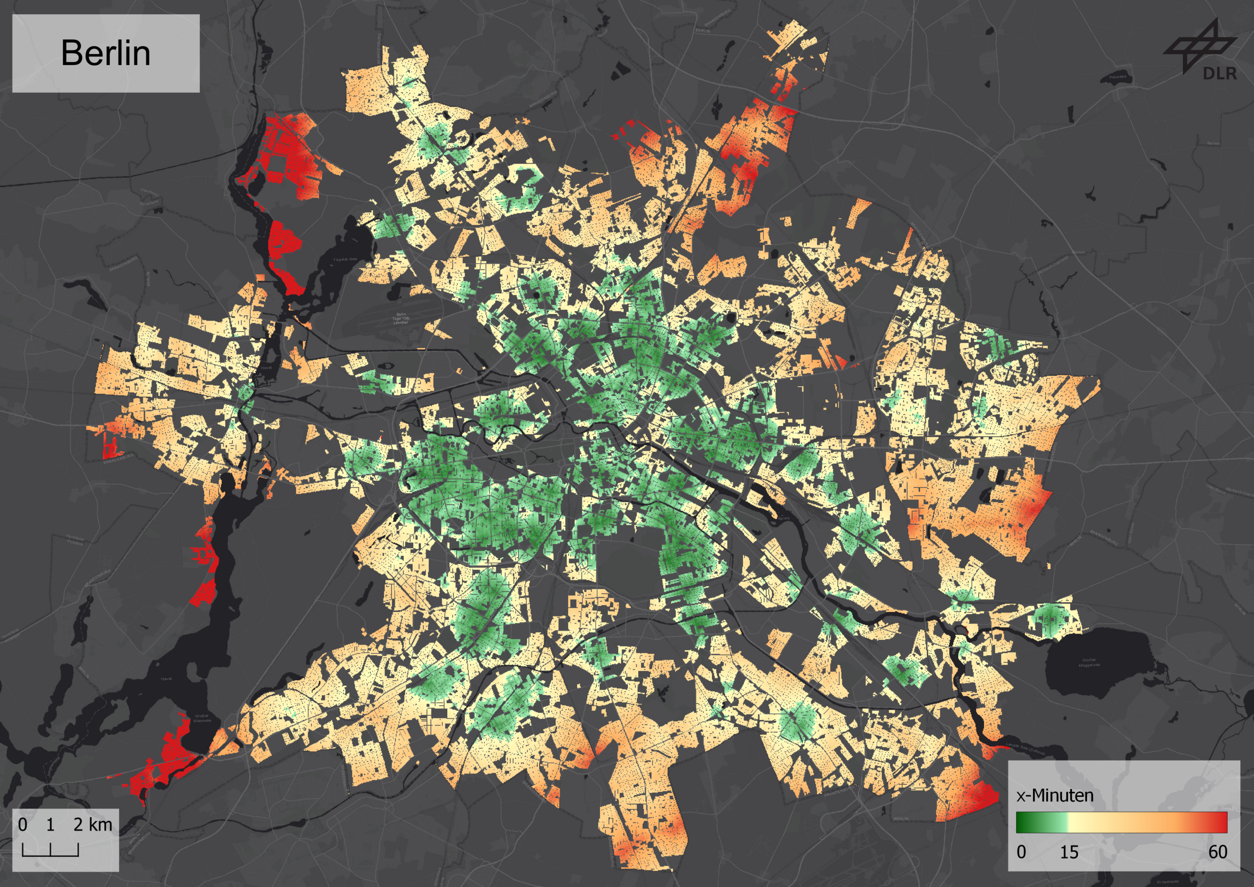 Here is the abstract of the paper: The concept of the 15-minute city has gained a lot of popularity in recent years. Numerous studies have looked at a wide variety of cities, providing insights into the extent to which the 15-min-city has been achieved, or the specific x-minuteness that has been achieved so far. In a context of competition between cities in terms of quality of life and sustainability, statements about their performance in terms of x-minuteness dominate. However, to date there has been no research on the quantitative measurement and comparison of x-minuteness for different urban structure types. Urban structure types are defined by specific combinations of characteristics of the built environment. In this study, the pedestrian x-minuteness is computed for the fifteen most populated cities in Germany and compared across six characteristic urban structure types. The results underline that pedestrian accessibility varies greatly based on different urban structural types and that it is important to look more closely at the spatial composition of cities at the neighbourhood level. This spatially differentiated information helps to target improvements more efficiently and, thus, to increase quality of life more equitably.