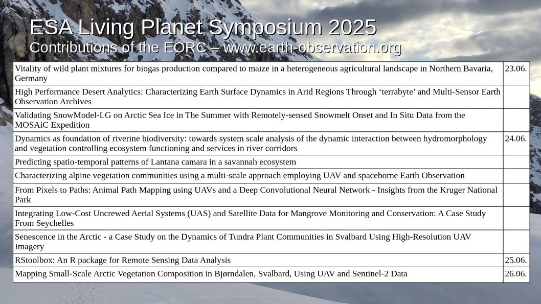 This week, the global Earth observation community gathered in Vienna for the ESA Living Planet Symposium 2025 — one of the most anticipated events for anyone passionate about understanding our planet through remote sensing. Our team was proud to contribute with an exciting range of research projects, covering topics from Arctic snow to African savannahs, from desert analytics to digital urban studies.