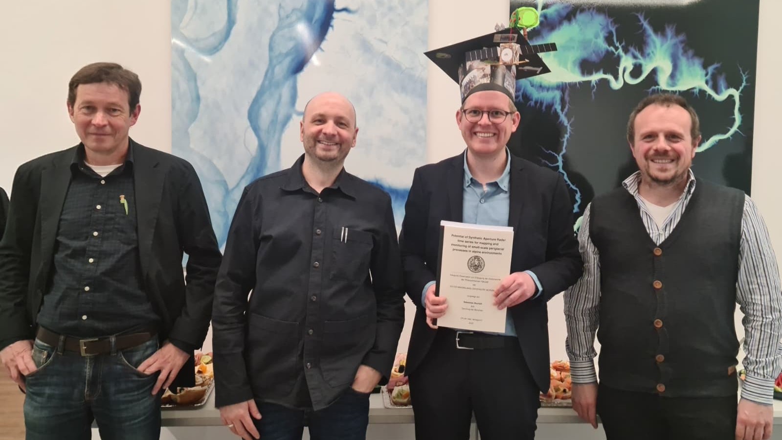 We are very pleased to congratulate our PhD student Sebastian Buchelt on his successful defense of his dissertation, “Potential of Synthetic Aperture Radar time series for mapping and monitoring of small-scale periglacial processes in alpine environments.” His work represents an important step forward in understanding how remote sensing can support long-term monitoring of fragile alpine permafrost systems.